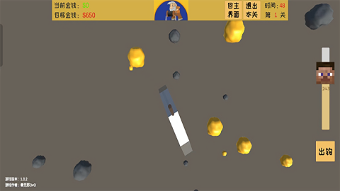 单机版的《黄金矿工中文版》,网上有些版本的首场过关分数为800,而单机版本为650,事实上650的这个版本更难。可能有些目标分数算法不同。经过实测发现,650分版本中黄金的单位重量增加了15%,且钩索摆动幅度会随关卡提升而增大,这使得后期关卡需要预判更复杂的抛物线轨迹。