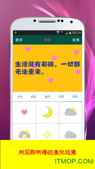 美言app是一款专为文字爱好者打造的创意美化工具,让你的日常表达瞬间升级为艺术创作。无论是朋友圈动态、微博分享还是个人日记,这款应用都能通过丰富的自定义选项为文字注入独特魅力。用户可自由调整字体风格、背景图案、文字大小及色彩搭配,更支持全屏图片编辑功能,让每一段文字都能与精美视觉元素完美融合。告别千篇一律的社交表达,用充满设计感的文字展现个性,现在下载还能享受IT猫扑专属新用户福利,让你的文字创作从此与众不同!