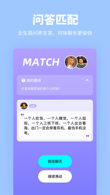 新增速配功能,用户可以与在线匹配对象立即开启聊天。优化了匹配算法,提高了交友效率。同时增加了多种聊天表情和互动方式,让线上交流更加生动有趣。修复了部分界面显示问题,提升了用户体验。