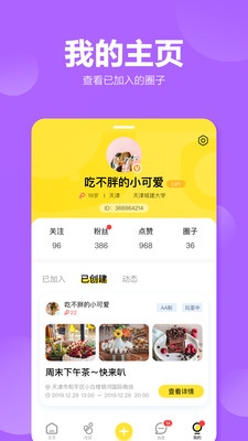 个人主页:用户可以在个人主页管理已加入的圈子、收藏的活动和发布的内容,打造专属的社交名片。