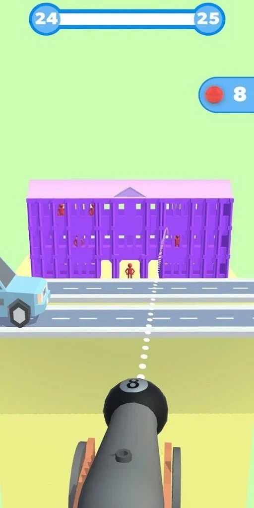 2、玩家需要根据不同场景选择强度,消除或摧毁障碍物才能进入下一关;每个关卡都设有独特的障碍物布局,需要玩家灵活调整策略,找到最佳射击方案。