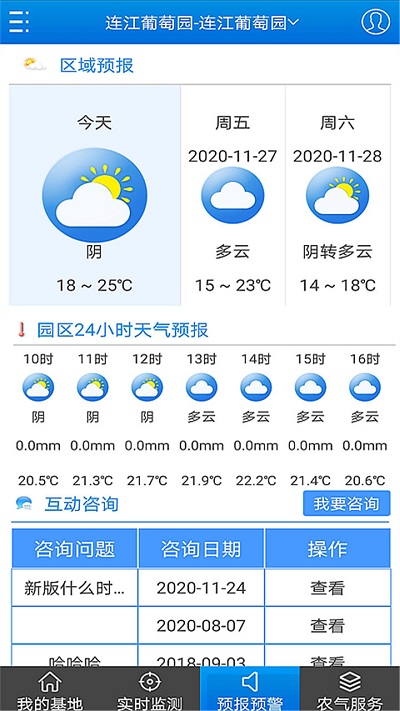3.支持多区域天气对比查询,用户可以随时查看不同农业园区的实时天气状况,便于进行跨区域管理决策;