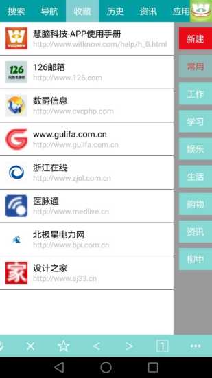 1、标签栏:单击标签栏中的功能标签将切换到对应的功能界面;单击当前界面的功能标签将刷新或回到当前功能的首页;单击标签栏一侧的APP图标,弹出通用菜单,可进行登录、系统、肤色、首页、全屏、左右手等多种设置,满足您的个性化需求。通用设置选项丰富,操作简单直观,让您轻松定制专属浏览体验。