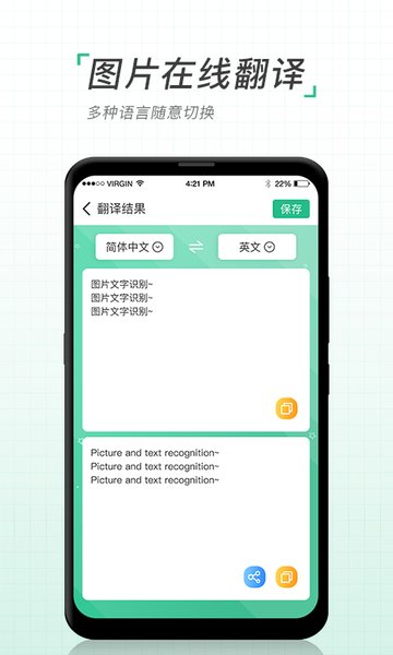 内置强大的翻译引擎,支持对拍摄的图片或导入的图片进行即时翻译。用户可以选择多种目标语言,翻译结果准确流畅。翻译后的内容可以随时编辑修改,并支持保存为文档或直接分享给他人,是学习和工作中的得力助手。