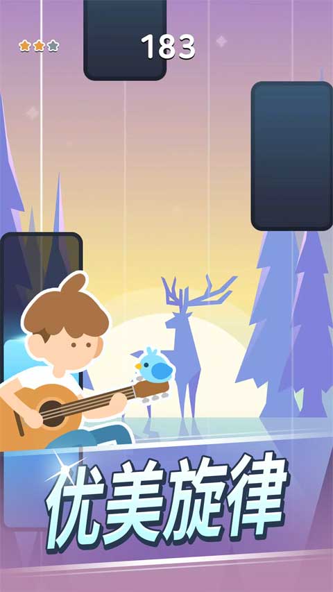 3、核心玩法是跟随音乐节奏进行点击或长按操作,玩家需要精准把握时机才能获得高分。每关的目标是收集三颗星星完成完美通关,这需要玩家反复练习掌握节奏。