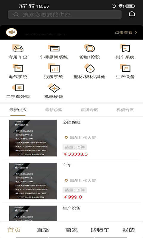 专用车云购物App是一款专注于汽车行业的综合性服务平台,核心功能包括求购与供应信息发布、行业资讯获取以及交易对接。平台主要服务于专用车企、零部件制造商和经销商,覆盖车桥悬架系统、轮胎、刹车系统、电气系统、液压系统等核心领域。此外,还提供型材、生产设备、金融服务等配套资源,并通过直播功能实现实时互动。无论是企业采购还是个人需求,都能在这里找到精准匹配的解决方案,助力用户高效完成交易。