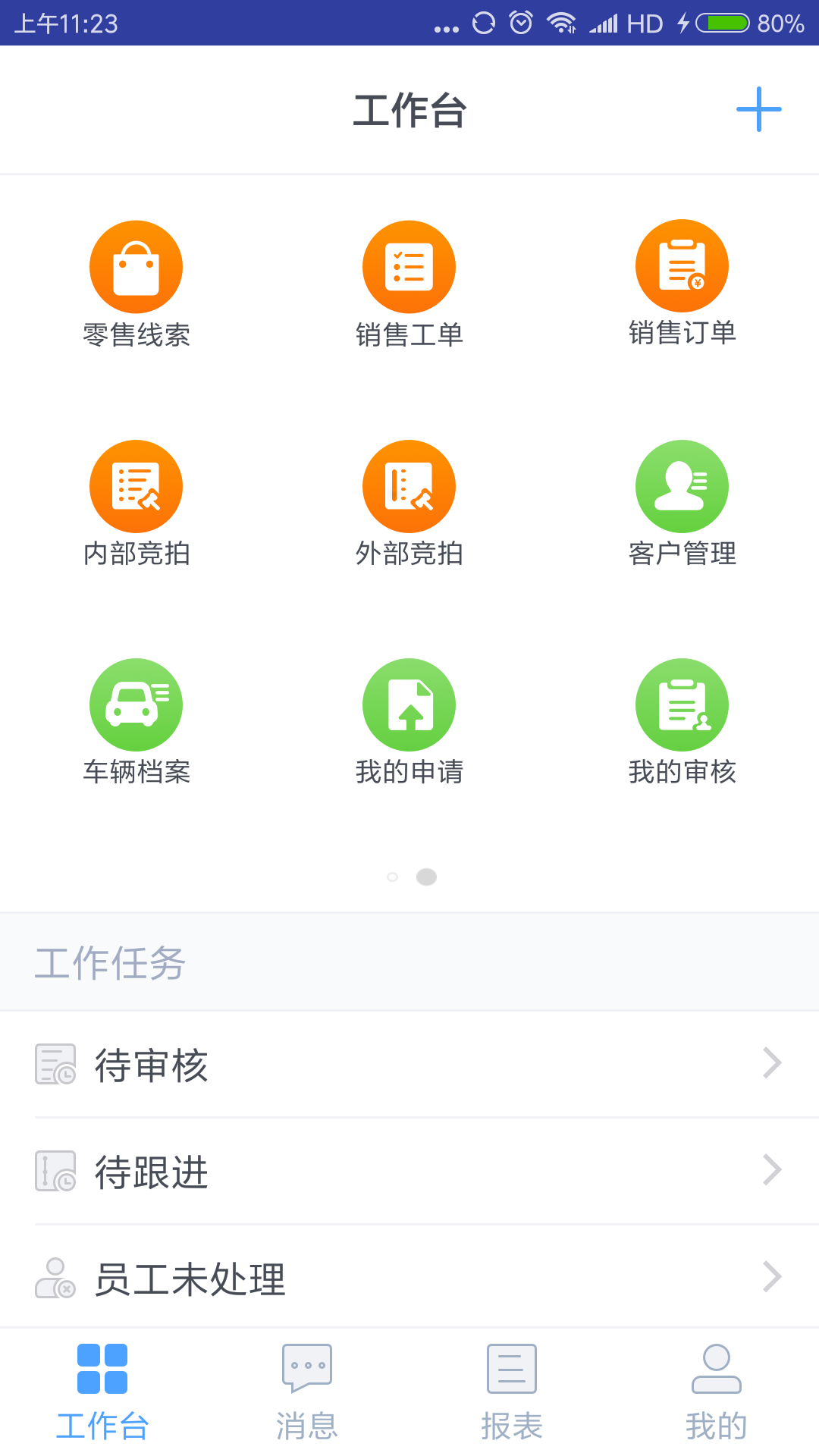 工作台作为核心操作界面,包含完整的业务管理链条。采购模块支持线索跟进、评估工单创建和采购订单处理;销售模块涵盖零售线索追踪、销售工单管理和订单执行。库存管理提供智能定价策略、库存状态监控和跨店共享功能,调拨管理实现车辆高效流转。特色竞拍系统包含内部员工竞拍和外部客户竞拍双模式,配合完善的客户关系管理功能。业务流程支持在线申请和审批,确保管理规范。