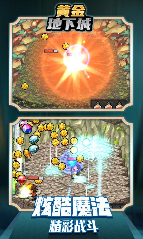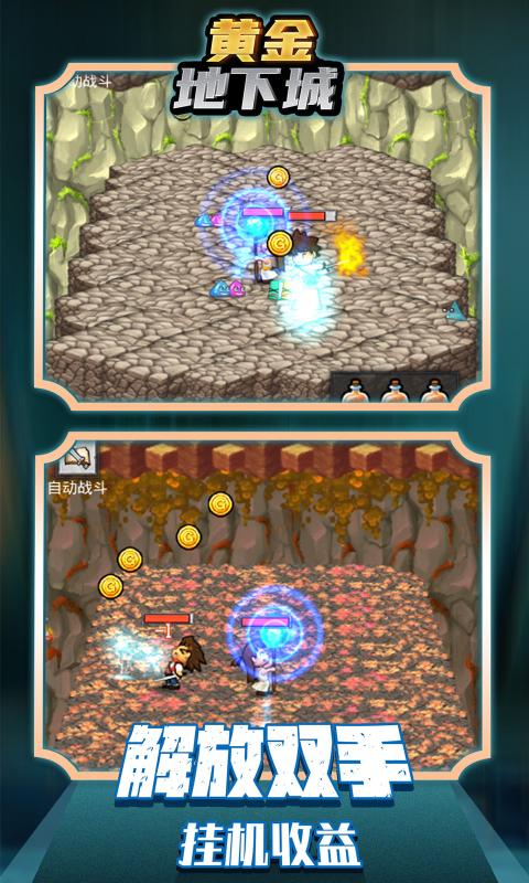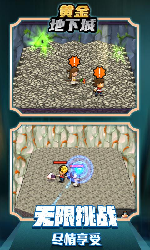 《黄金地下城》是一款采用经典像素风格的冒险RPG手游。故事发生在一个原本宁静的村庄,突然涌入大量史莱姆。起初这些史莱姆都很友善,但不知为何突然变得狂暴。村民们怀疑是地下城最深处(第999层)发生了异变,于是勇敢的剑士杰克与魔法师罗斯踏上了冒险征程。游戏采用轻松简单的操作方式,玩家可以通过挂机获得丰厚收益。丰富的装备系统和独特的角色培养机制,让游戏兼具休闲与策略性。