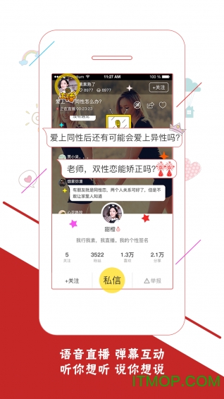 一路倾诉是一款创新型的心理健康服务平台,通过语音直播和弹幕互动的方式,为用户打造一个温暖的心灵港湾。在这里,你可以随时找到专业的心理咨询师倾诉烦恼,也能结识志同道合的朋友分享快乐。平台汇聚了来自全国各地的资深心理咨询专家,涵盖情感、职场、家庭等多个领域,为用户提供全方位的心理支持。无论是想找人聊聊心事,还是需要专业的心理疏导,一路倾诉都能满足你的需求。现在就前往IT猫扑下载体验吧!