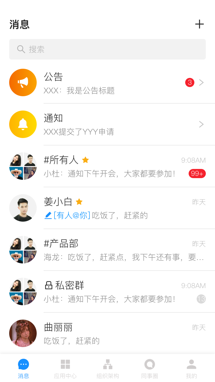 -内部实时通讯:支持万人级群聊、已读回执、消息撤回等企业级功能,可发送多种格式文件
