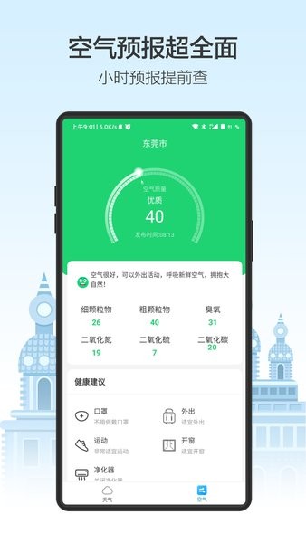 *语音播报:签约多位知名主播录制语音包,支持方言切换,让天气播报更具亲和力。