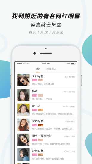 1、【真实】所有播主均经过线下专业经纪公司严格审核,确保身份真实可靠。你可以轻松找到附近的网红明星,发起即时聊天,让追星不再遥不可及。平台采用实名认证机制,杜绝虚假信息,让你与偶像的互动更有保障。