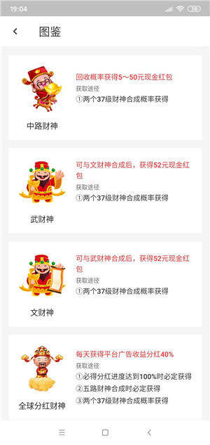 2、系统会随机掉落各类财神角色,通过合成可以升级为更高级的财神。每提升一个等级,收益都会成倍增长,最高可达38级的至尊财神。