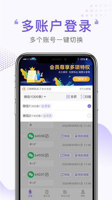 -多号登陆:支持同时管理多个微信账号的语音数据,一键切换不同账号,满足工作生活多场景需求。数据独立存储,确保隐私安全。