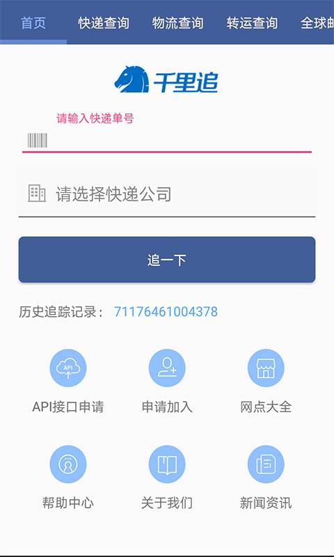 千里追平台集成了上百家常用物流和快递企业的查询接口,涵盖国内、国外及全球邮政和电商品牌的物流信息查询。平台不断更新和完善接口,确保用户能够获取最新、最准确的物流动态。此外,2017年9月,千里追根据用户的实际需求,推出了部分企业的网点信息查询功能,进一步提升了用户体验。无论您的包裹来自哪里,千里追都能为您提供一站式查询服务。
