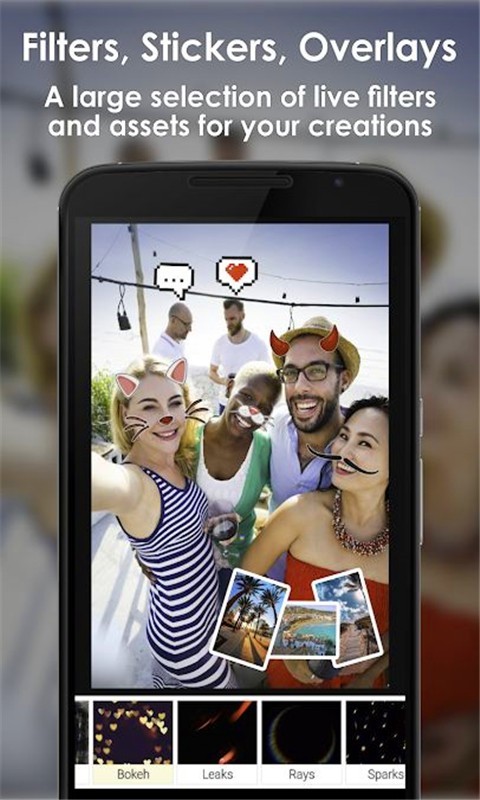 【一键上妆】素颜也能拍出精致妆容!应用涵盖了各类眉形、睫毛、眼线、口红、腮红等,满足所有少女心的需求。实时预览上妆效果,随心切换,让你轻松晋升自拍达人!
