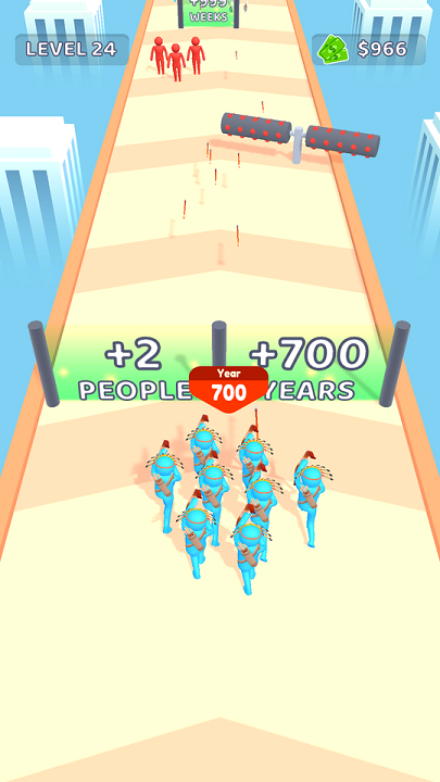 游戏采用创新的跑酷+策略玩法,在一个融合多种艺术风格的奇幻世界中展开冒险。玩家需要操控角色在充满挑战的关卡中奔跑前进,同时收集各种增益道具和奖励。独特的倍增门机制可以让您的军队规模瞬间扩大,但也要小心避开各种致命障碍。随着游戏进程,您将解锁更多特殊技能和强力装备,这些都将帮助您在激烈的战斗中占据优势。每个关卡都经过精心设计,确保玩家能获得持续的新鲜感和挑战乐趣。