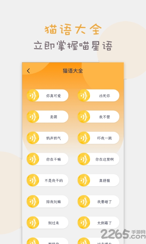 猫语翻译:猫语翻译成人话,让您感受猫咪的情绪!应用能够将猫咪的叫声转化为人类可以理解的语言,帮助你更好地了解猫咪的情绪和需求,增进彼此的理解。