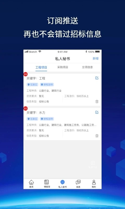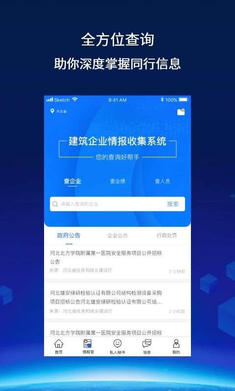 建企查手机版是一款专为建筑行业从业者打造的APP平台,提供建筑工程招标信息、拟(在)建工程信息以及建筑企业信息的查询服务。用户可以通过订阅功能,定制符合自身需求的招标信息,系统会通过多渠道第一时间将最新信息推送至您的手机。无论是大型建筑企业还是个人从业者,建企查都能帮助您快速获取行业动态,提升工作效率。此外,平台还支持多维度信息筛选,确保用户能够精准找到所需内容,为您的业务决策提供有力支持。