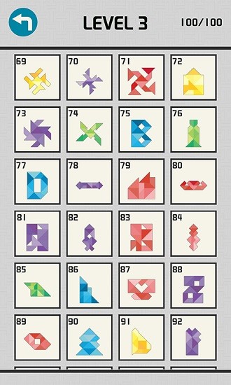 结合了经典的七巧板玩法完成不同的挑战,将会让你的脑力再次的来升级。游戏通过经典的七巧板玩法,结合现代的解谜元素,让玩家在挑战中不断提升自己的思维能力。每一种图形你都能够来完成,不同的形状都可以来任意的完成,获得其中的乐趣。游戏中的图形设计非常丰富,玩家可以通过拼接不同的形状来完成各种图案,享受拼图的乐趣。让你的手指变得更加的灵活才能够在规定的时间来完成不同图形的拼接。游戏中的拼图操作需要玩家灵活运用手指,通过拖动和旋转碎片来完成拼接,提升手指的灵活性。仔细的来观察能够发现其中所隐藏的规律,各种方式都可以在其中来尝试。玩家需要通过仔细观察,发现图形中的隐藏规律,从而找到最佳的拼接方式。通过了手指的拖动来完成不同的图案拼接,每一种图案你都需要来完成。游戏中的每一关都需要玩家通过手指的拖动来完成图案的拼接,挑战你的解谜能力。