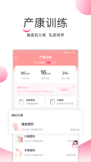 【产康训练】针对产后腹直肌分离、塑形等问题,提供科学有效的康复方案,帮助用户恢复身材。