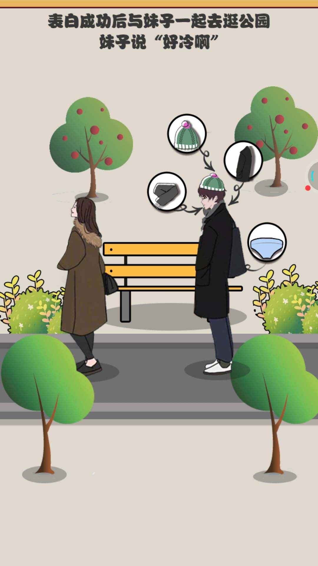 2、脑洞大开,舔狗无限。如何快速抓住女神的心,光靠喂养、搭讪、讨暖是不够的。女神的心思你永远猜不透,所以请开启你神奇的大脑,解放你的惯性思维,千方百计让女神对你刮目相看~部分关卡需要结合现实中的心理学知识,比如运用吊桥效应或曝光效应来制造心动瞬间。