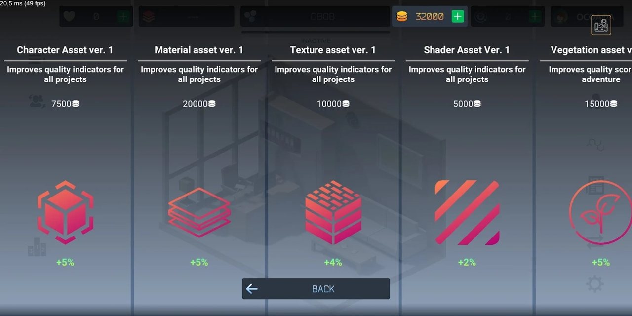 1、游戏采用清新的3D卡通风格设计,搭配轻松有趣的背景音乐,营造出沉浸式的游戏氛围,让玩家在轻松愉快的环境中享受游戏开发的乐趣。2、作为一家游戏公司的创始人,你需要不断扩大公司规模,增加游戏开发数量,这款游戏支持离线模式,你可以随时随地管理你的公司。3、通过购买资产和投资模块,你可以提升公司的运营效率,在游戏中,合理的投资策略将帮助你更快地成为游戏开发大亨。