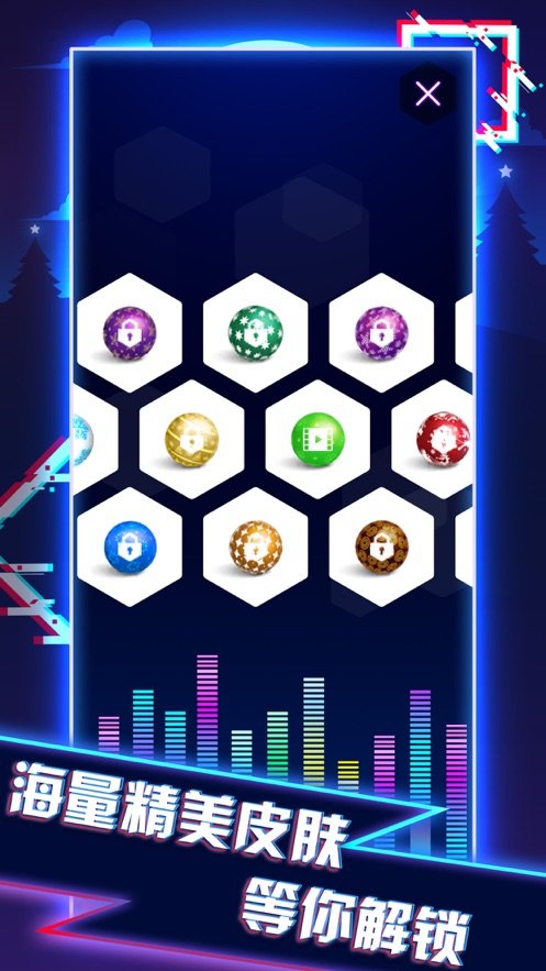 游戏最大的亮点在于支持自定义音乐功能,玩家可以上传自己喜欢的歌曲,系统会自动生成专属关卡,让每首歌曲都能带来全新的游戏体验。操作采用一键式设计,简单易上手但极具挑战性。精美的3D视觉效果让跳跃过程更加生动立体,70多首风格各异的背景音乐带来丰富的听觉享受。20多种精心设计的场景背景随机切换,保持游戏新鲜感。此外,游戏还提供多种皮肤收集系统,让玩家打造个性化的弹球形象,并支持社交分享功能,方便与好友一起比拼成绩。