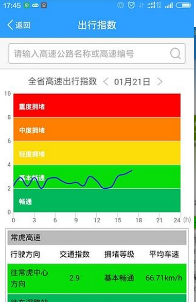 4、路况简图模块以简图的方式展示市区及全省高速路分布的路况信息。优化了地图渲染引擎,加载速度提升30%,支持手势缩放查看细节;