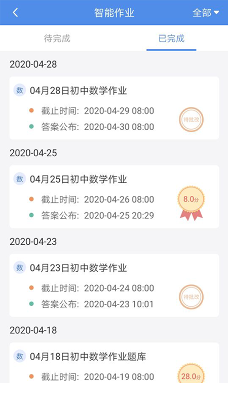 【作业练习】平台支持智能作业系统,教师可实时布置作业并设置截止时间。学生提交作业后,系统会自动批改客观题,教师可在线批改主观题并添加语音评语,学生能即时查看成绩和错题分析。