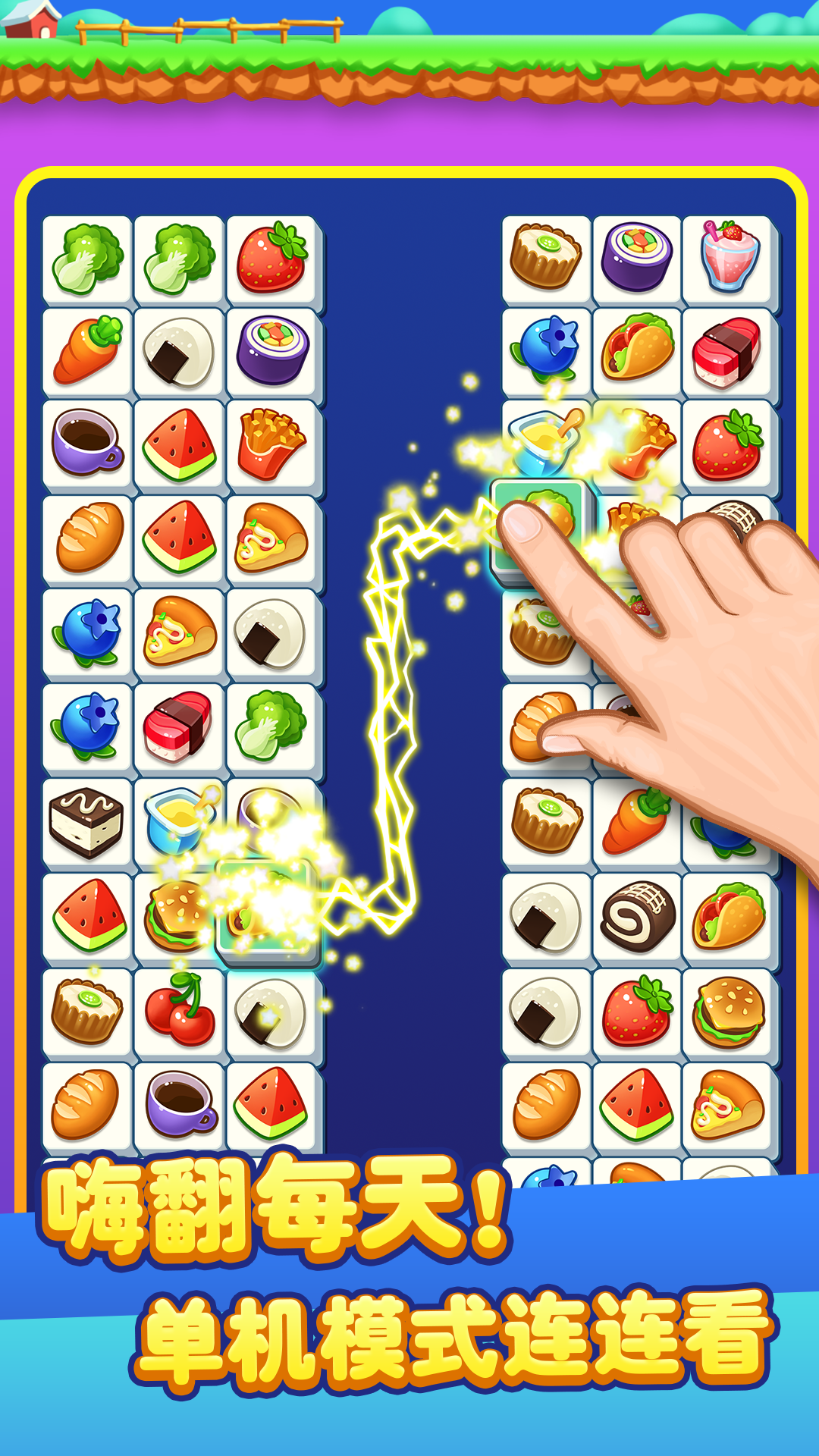 游戏的操作方式非常简单直观,即使是初次接触连连看的玩家也能快速上手。玩家只需用手指或鼠标点击两个相同的食物图标,如果它们之间的连线转折不超过两次且未被其他图标阻挡,即可成功消除。游戏还贴心地提供了提示功能,当玩家遇到困难时,可以点击提示按钮快速找到可连接的图标。此外,游戏支持多种操作模式,包括经典模式和限时模式,满足不同玩家的偏好。流畅的操作体验让玩家能够全身心投入到游戏的乐趣中。