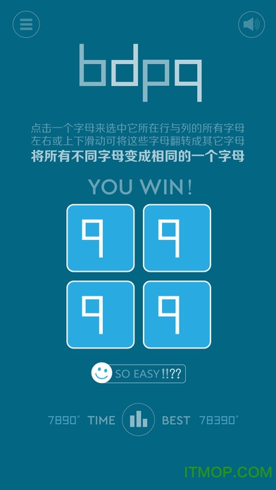 这是一款真正考验智力的精品游戏,虽然难度极高,但只要保持耐心不断尝试,最终总能发现其中的规律。这类解谜游戏的核心乐趣就在于独立思考和自主探索,单纯追求速度或依赖公式反而会失去游戏的本质乐趣。对于高阶模式实在无法突破的玩家,这里提供一个实用小技巧:尝试成对操作字母。具体来说,就是观察相邻字母之间的关系,通过合理的组合操作来简化方阵。当然,这只是众多解法中的一种,每个玩家都可能发现独特的解决之道,这正是《bdpq》最吸引人的地方。