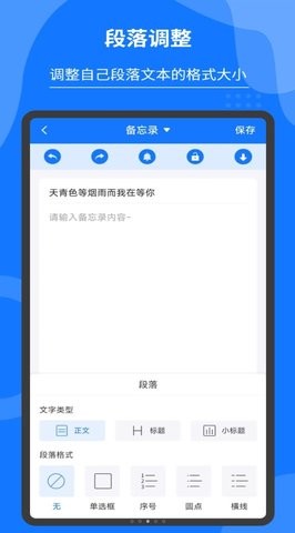 3、支持备忘录、记事本、写日记、便签、待办事项等多种功能服务!多种功能集于一身,满足用户多样化的记录需求,提升生活和工作效率。