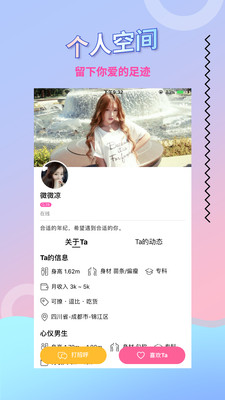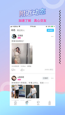 【附近动态】浏览附近动态,发现同城缘分。陌叮的动态功能让用户可以随时查看附近用户的动态,了解他们的生活点滴,发现更多同城缘分。通过动态互动,用户可以更好地了解对方,增加交友的成功率。