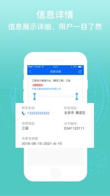 全国各行各业企业资质信息随心查看,在线一键联系咨询合作。用户可以通过资质信app快速浏览全国范围内的企业资质信息,并根据需求直接与相关企业进行沟通。平台还提供了智能推荐功能,帮助用户找到最匹配的合作伙伴,提升合作效率。无论是寻找供应商还是寻求合作机会,资质信app都能为您提供全面的支持。