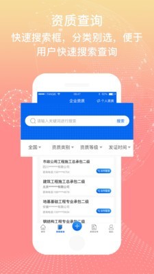 资质信app汇聚了海量个人资质、企业资质、及资质代办机构、资质转让等服务,涵盖全行业资质服务,为资质拥有者及代办服务机构、寻求资质合作者提供精准的沟通桥梁。用户可以通过平台快速找到所需的资质服务,并通过智能匹配功能与相关机构或个人进行高效沟通。平台还提供了用户评价和反馈功能,帮助用户了解服务质量和机构信誉。无论是资质查询、合作还是代办,资质信app都能为您提供专业、高效的服务支持。