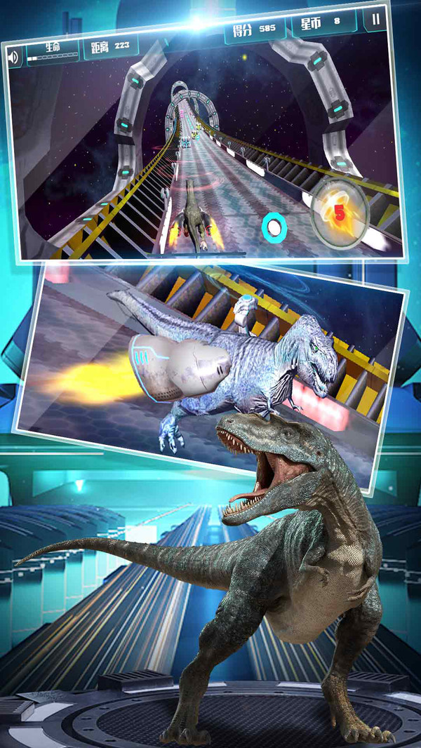 2、在游戏中玩家要操控机器恐龙通过重重障碍到达终点取得胜利,考验反应与策略;