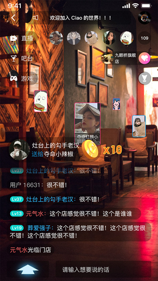 1、实景同步:真实商家提供线上虚拟实景场所,用户可以选择不同风格的场景进行社交,从温馨咖啡馆到热闹酒吧,应有尽有。