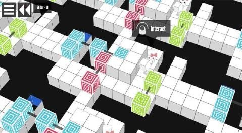 2、游戏通过简约的艺术风格营造出独特的氛围。白色立方体构成的宇宙既纯净又神秘,主人公小白和它的女朋友的逃离愿望引发了玩家强烈的情感共鸣。这种情感驱动让解谜过程更具意义和深度。
