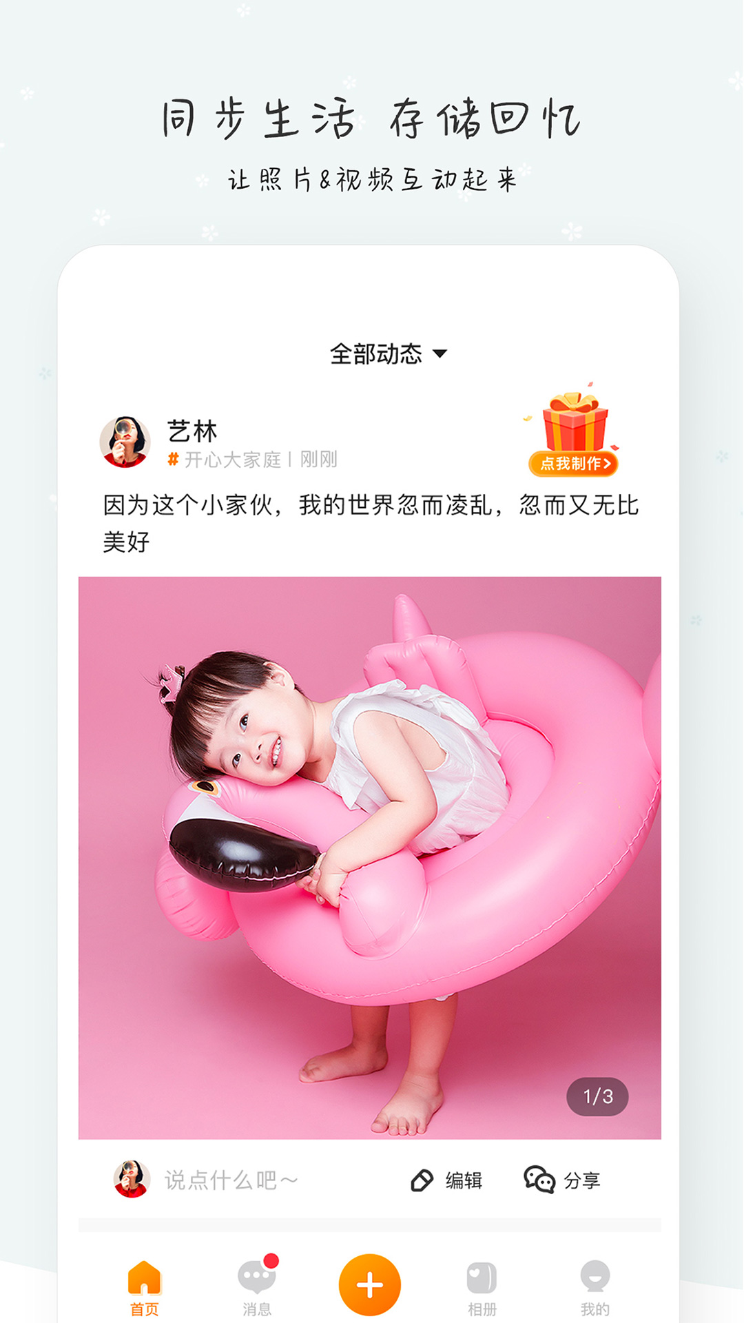2、同步生活,存储回忆。棉花IN提供了超大存储空间,用户无需担心手机空间不足的问题,可以尽情上传和保存照片和视频。云端存储功能确保用户的照片和视频安全无忧,用户可以随时随地访问和管理自己的相册内容。