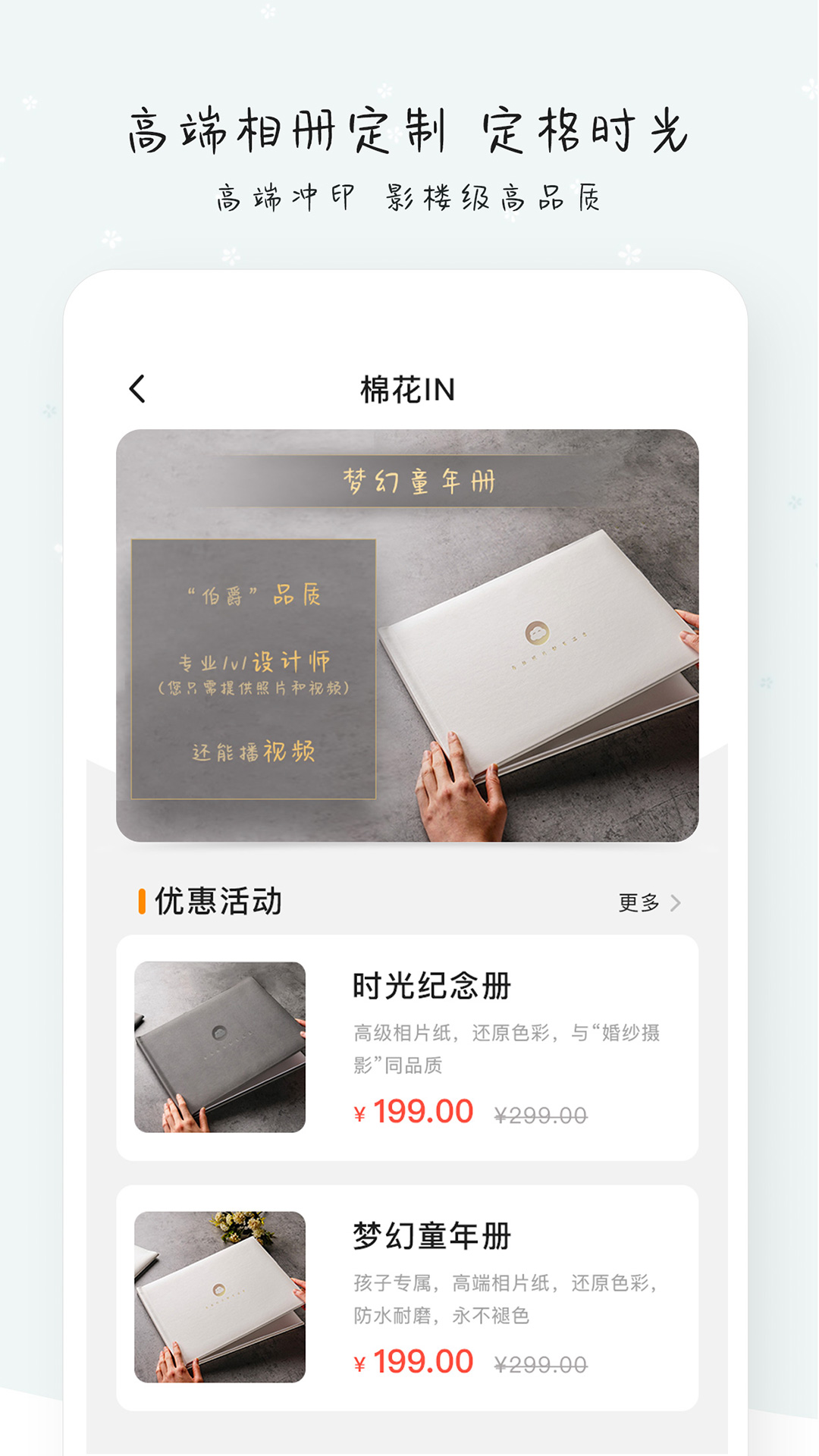 让每张照片都有他的温度。打开棉花IN,迎面而来的是一张张充满温度的照片,他和他背后的故事都将被永久保存,甚至打印成册,成为一本独一无二且珍贵无比的时光礼物。棉花IN不仅仅是一个相册定制工具,它更是一个记录生活、分享情感的平台。用户可以通过这款软件将日常生活中的点滴瞬间转化为永恒的回忆,无论是家庭聚会、旅行记录还是重要时刻,棉花IN都能为用户提供最佳的相册定制体验。通过棉花IN,用户可以轻松地将手机中的照片和视频整理成精美的相册,无论是个人使用还是与亲友分享,棉花IN都能为用户带来独特的相册定制体验,让每一张照片都充满温度和故事。