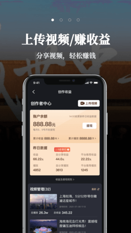 沉浸体验爽翻天:票圈视频为用户提供了大屏观看的沉浸式体验,高清画质让每一帧都清晰可见,同时无广告打扰,确保流畅的观赏体验。无论是追剧还是看短视频,都能让你感受到极致的视觉享受。原创内容随分享:作为数千位原创UP主钟爱的平台,票圈视频让你的创作更容易被更多人发现。一键分享功能让你轻松将精彩内容传递给亲友,让快乐不再局限于个人,而是成为大家共同的享受。上传视频赚收益:在全民自媒体的时代,票圈视频为创作者提供了丰厚的收益机会。通过上传视频,你不仅可以展示才华,还能参与千万奖金的争夺,实现创作与收益的双赢。海量视频看不停:平台汇聚了全网最热门的视频内容,涵盖搞笑段子、生活Vlog、观点讲解、街拍旅拍、歌舞表演等多种类型,满足不同用户的观看需求,让你随时随地都能找到喜欢的视频。