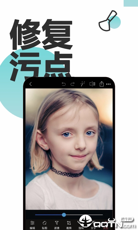 瑕疵移除:使用简单易用的一键功能,美化和简单修补照片,去除不必要的瑕疵。