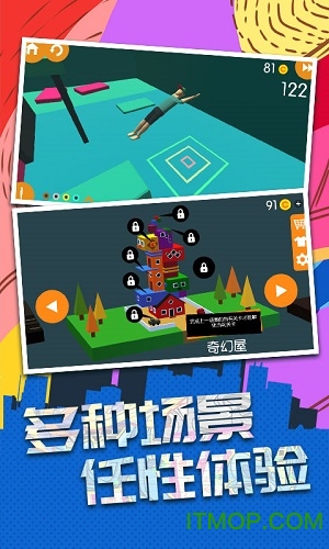 多种场景任性体验:游戏场景涵盖城市、自然、工业区等多种主题,每个场景都有独特的物理特性和视觉风格。