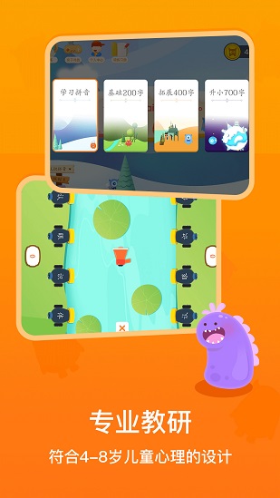 2.使儿童在短时间内识别并快速掌握汉字,独立阅读儿童读物,并不断完善。软件通过高效的教学方法,帮助孩子快速提升识字能力,为独立阅读打下基础。