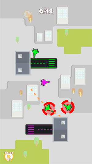 1、每个关卡中飞机场的位置都不一样,小飞机会从各个方向飞过来。关卡设计巧妙,需要玩家不断调整策略