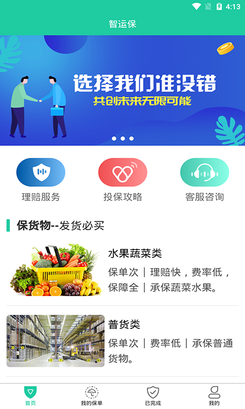 3.投保:智能投保系统可根据货物类型、运输路线自动计算保费,支持多种支付方式,投保成功后即时生成电子保单。