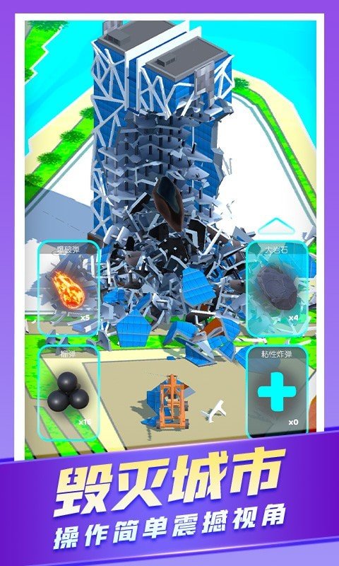 2、游戏采用简单直观的操作方式,让玩家可以轻松控制各种爆破机械。高度自由的玩法让你随心所欲地选择爆破目标,无论是摩天大楼还是桥梁隧道,都能体验到破坏带来的独特快感。