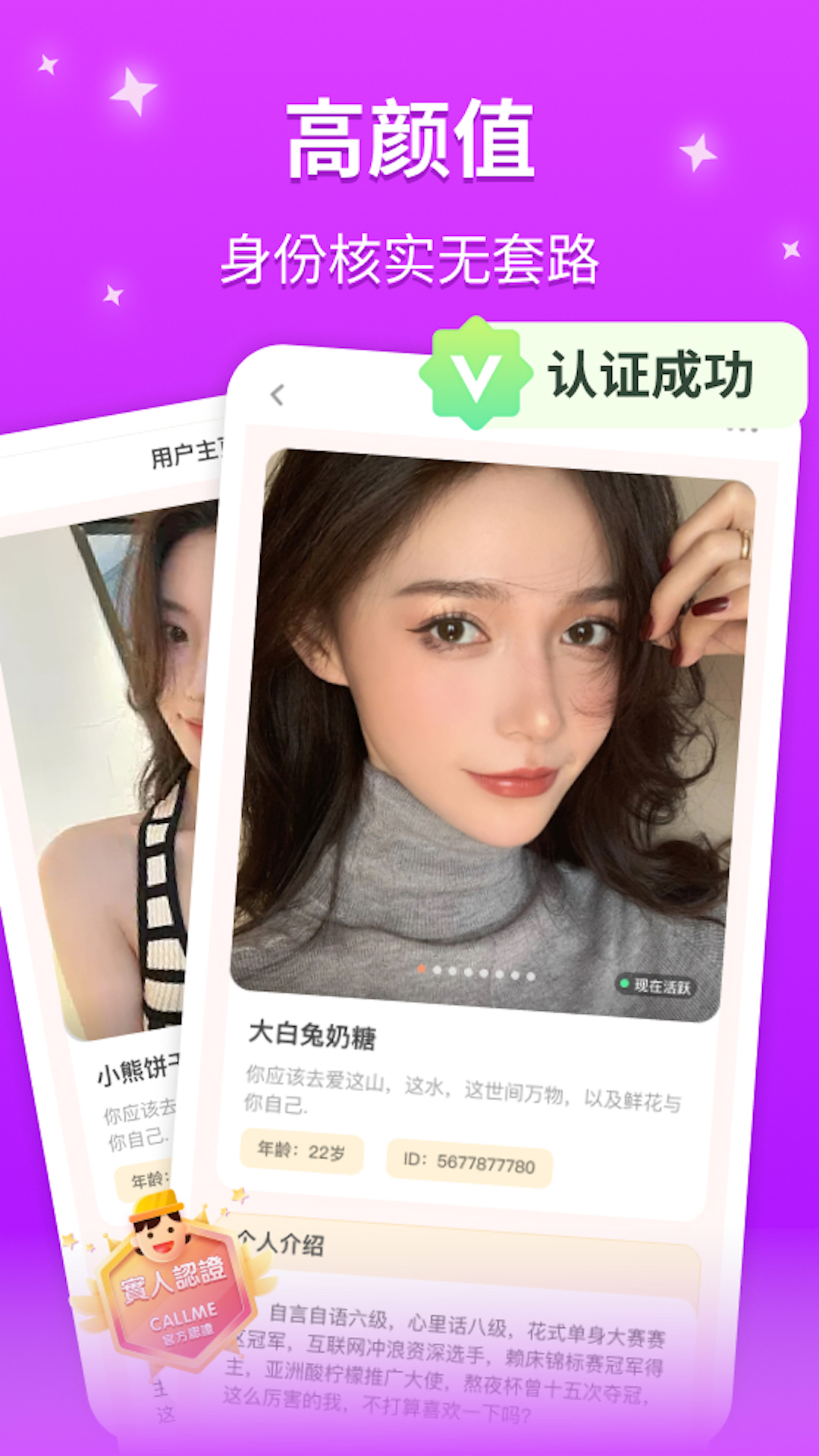 【真诚实名】:三重认证体系(身份证+人脸识别+社交资料审核)打造纯净交友环境。举报机制响应迅速,不良用户将被永久封号处理。