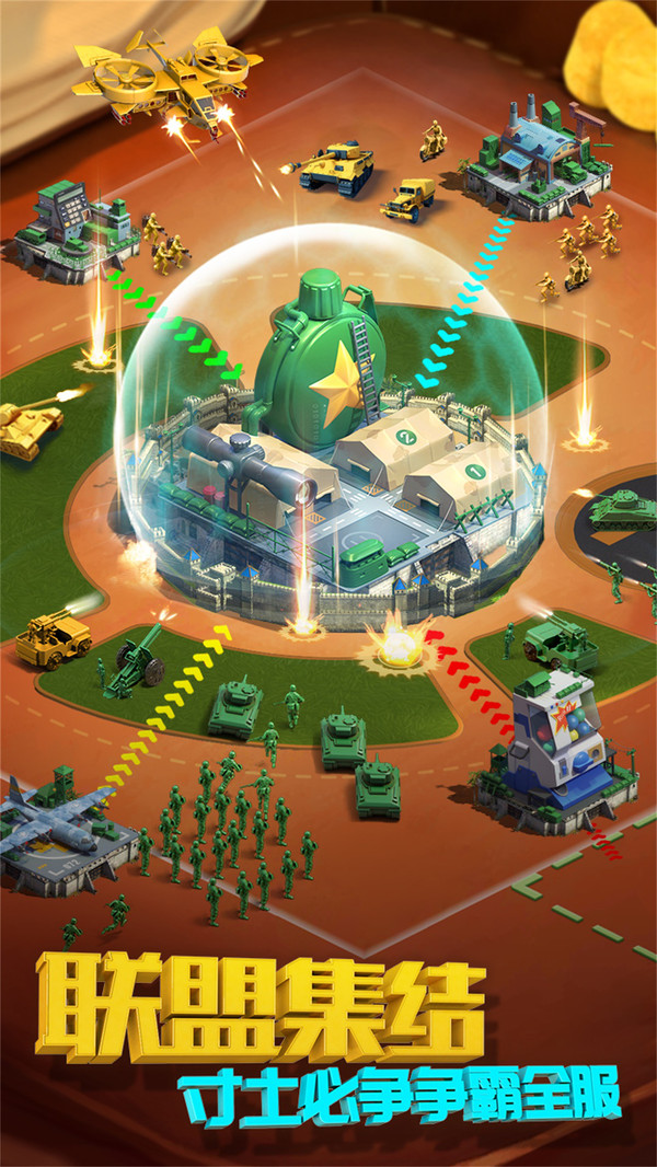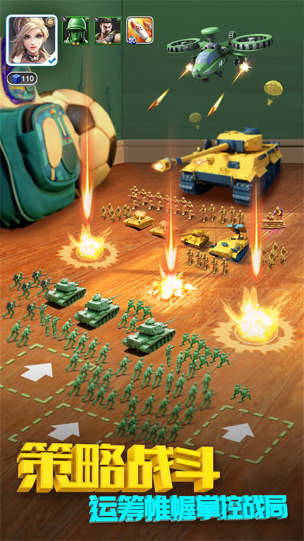《玩具英雄连》作为策略手游的革新之作,突破性地将玩具世界与战争策略完美结合。游戏提供数十种造型各异的特色兵种,从会发射橡皮筋的铅笔士兵到喷吐泡泡的洗洁精坦克,每个单位都充满创意。玩家需要组建多兵种协同作战的玩具军团,在立体化的战场中攻克由积木搭建的敌方堡垒。独特的上帝视角与动态光影系统,让玩家能清晰掌控海陆空三线战局,而Q版渲染风格则让残酷的战争呈现出欢乐的玩具总动员既视感。